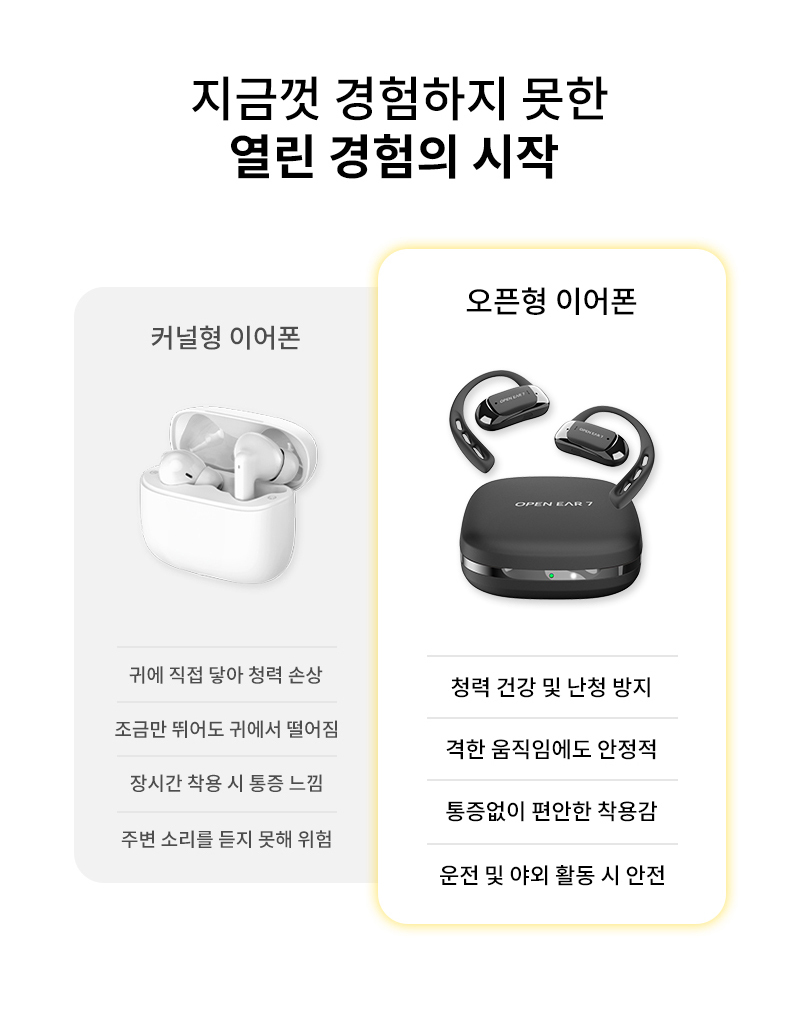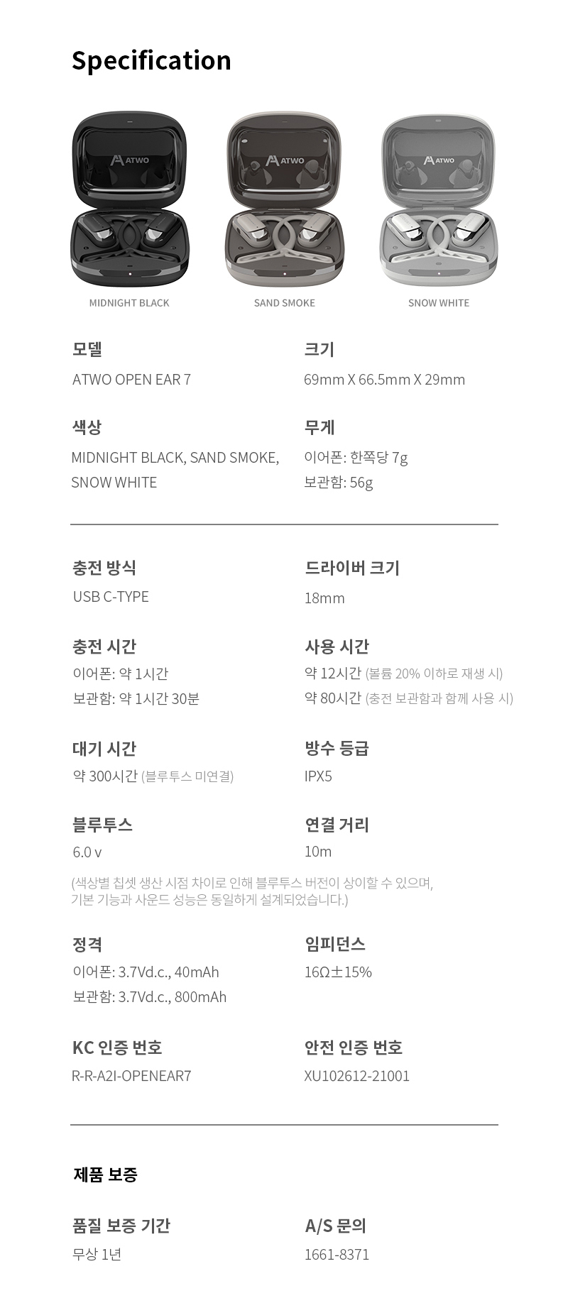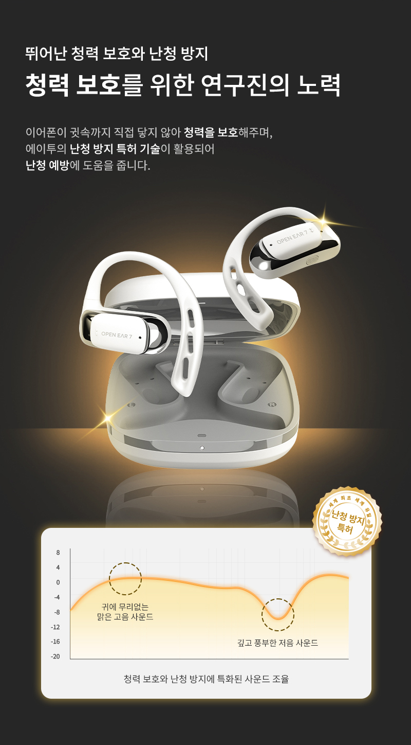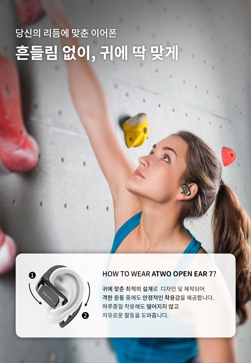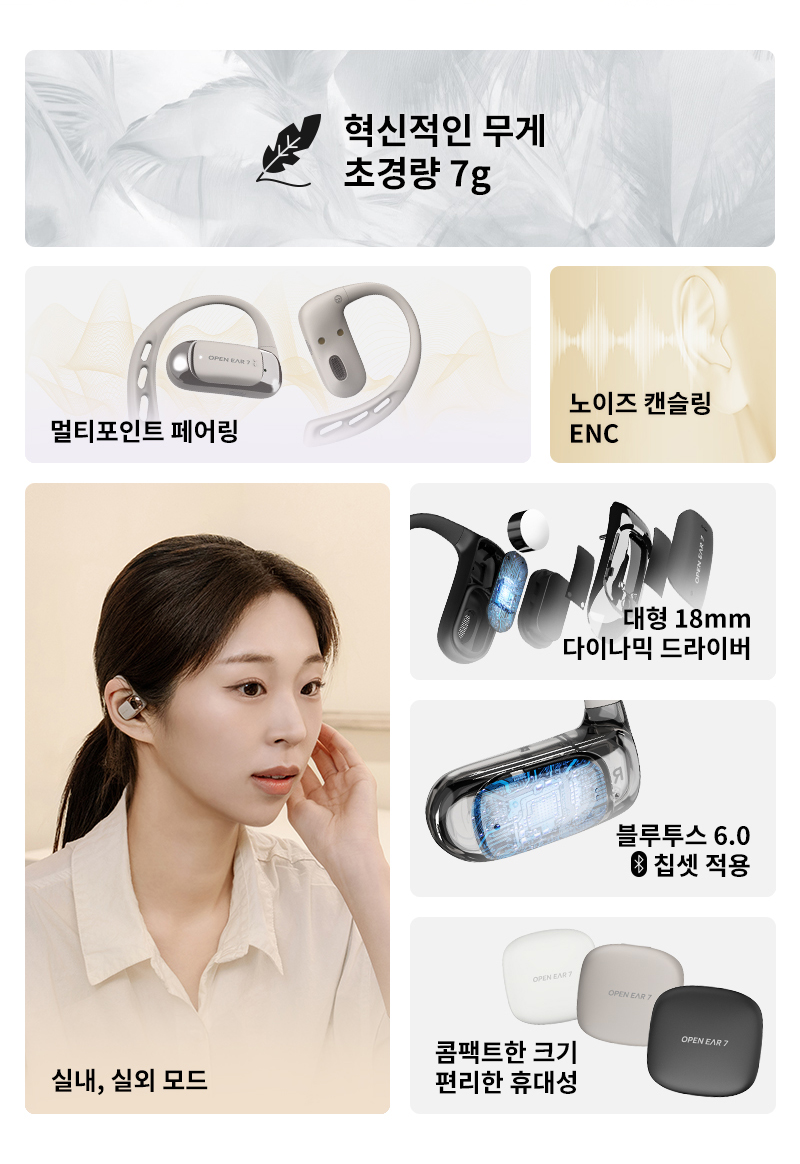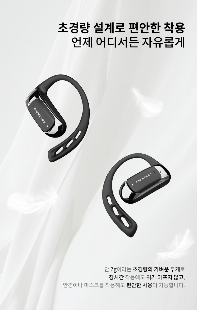 [에이투] 에이투 오픈이어7 오픈형 블루투스 이어폰 초경량 노이즈캔슬링 스포츠 귀걸이형 골전도 대체 무선이어폰 OPEN EAR 7
