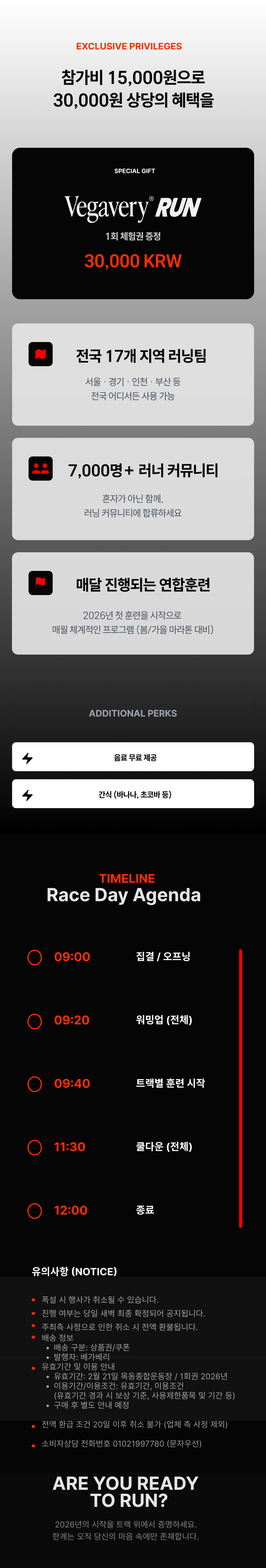 | 이용 가능 매장 | 3월 21일 목동종합운동장 / 1회권 전국 17개 베가베리 러닝팀 |